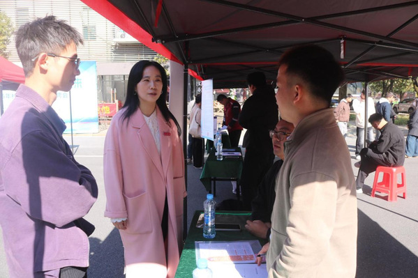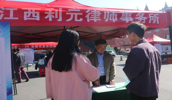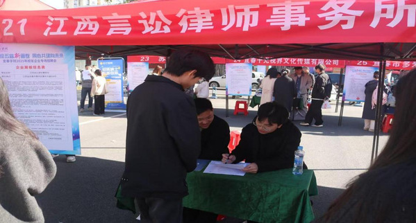 本站讯(学生通讯员毛涵瑞 程淑群 邬文婷)为促进毕业生高质量充分就业,深化校友企业与母校间的合作,11月30日上午,宜春学院在大学生活动中心广场前举办了校友专场招聘会,政法学院党委书记江海华、党委副书记彭农乐深入招聘会一线,学生工作办公室(团委)主任彭东陪同,我院大三大四学生参与本次招聘会。 初冬寒意难挡现场热烈求职氛围,上午九时,活动中心广场前人潮涌动,气氛活跃。多家优秀校友企业重返母校,其中我院校友企业江西利元律师事务所、江西言讼律师事务所以及江西大有科技有限公司面向毕业生提供了实习、就业岗位。