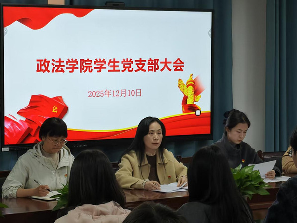 本站讯(学生通讯员于搏涛)2025 年 12 月 10 日下午,政法学院学生党支部在科技楼 M2-408 院会议室召开支部党员大会,专题讨论接收预备党员及预备党员转正工作。党支部全体师生参会,会议由学生党支部书记罗欣雨老师主持,学院党委副书记彭农乐出席。