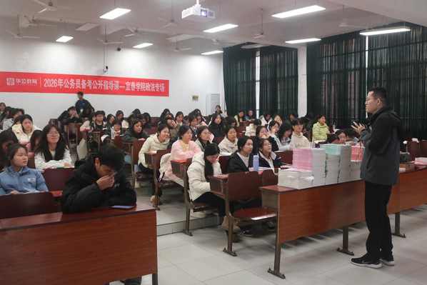本站讯(学生通讯员 邬文婷 邝诗婷 刘大胜)为帮助学子明确公务员考试相关政策、提升备考效率,政法学院联合江西华公教育于12月17日在人文楼103教室举办公务员备考公益讲座。本次活动由华公教育思成老师主讲,吸引了政法学院众多学子参与。