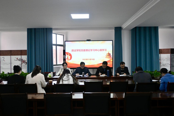 本站讯(学生通讯员 万泽钦)2025年11月10日上午9时,宜春学院政法学院党委理论学习中心组学习会在院会议室召开,会议专题学习贯彻党的二十届四中全会精神,深入研读《中共中央关于制定国民经济和社会发展第十五个五年规划的建议》。政法学院党委书记江海华主持会议,党委班子成员、党支部书记及科级以上干部参加学习。